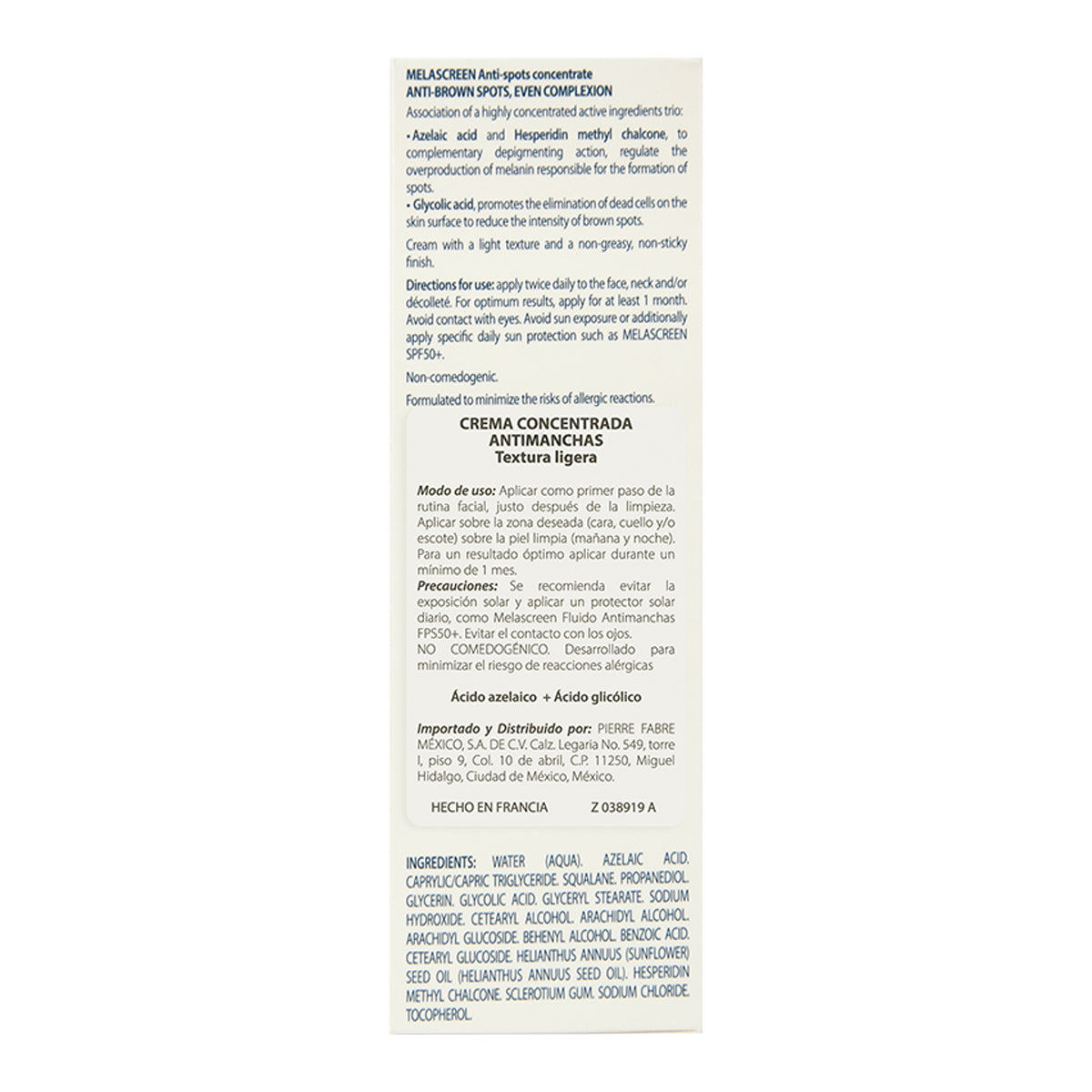 • Despigmenta eficazmente las manchas marrones gracias a una concentración muy alta de activos (15 %).